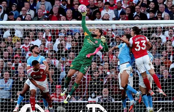 我尽量在禁区内覆盖尽可能大的空间,关键在于平衡,知道什么时候出击、什么时候不出击。夸张地前压或过于保守都不好。每种情况都必须处理得当。我的首要任务是在角球时帮助球队,因为他们需要我在禁区里的存在。我们在曼城准备每一个细节。我们知道阿森纳的角球很强,所以球队需要我提供帮助。