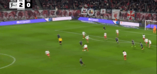 第31分钟,相互传射,哈德助攻鲍姆加特纳破门,莱比锡2-0法兰克福
